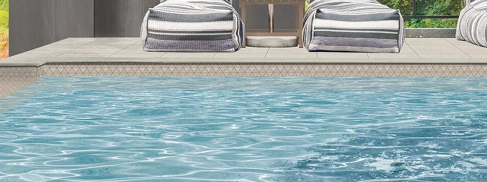 Rich neutral colors in a plaster visual or cement visual can be enhanced by a textured decorative accent or triangle mosaic. Available in several large format sizes. Three light colors feature a plaster graphic and random gloss application that adds a reflective element. Three dark colors in a cement visual worn by time and nature. All colors available in unpolished and light polished finishes.