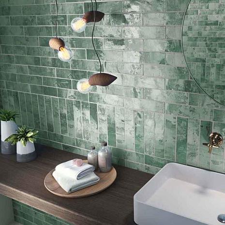 Snap Green These industrial looking yet chic glossy wall tiles transform your modern living space into an oasis in the midst of urban jungle. Think fresh. Let Snap tiles bring you back to nature. Available colors are glossy white, sky, cinder, pink and green, all with complimentary bullnose and torello trims. |