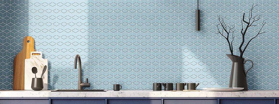 Color Wheel™ Retro offers a curated assortment of natural colors from the original Color Wheel™ line and transforms them into unique mosaic patterns. This collection features classic black and white along with organic blues and greens. Arabesque, Harlequin, Chevron and Cube patterns are available multiple colors in a glossy finish as well as a matte finish featured in black and white.