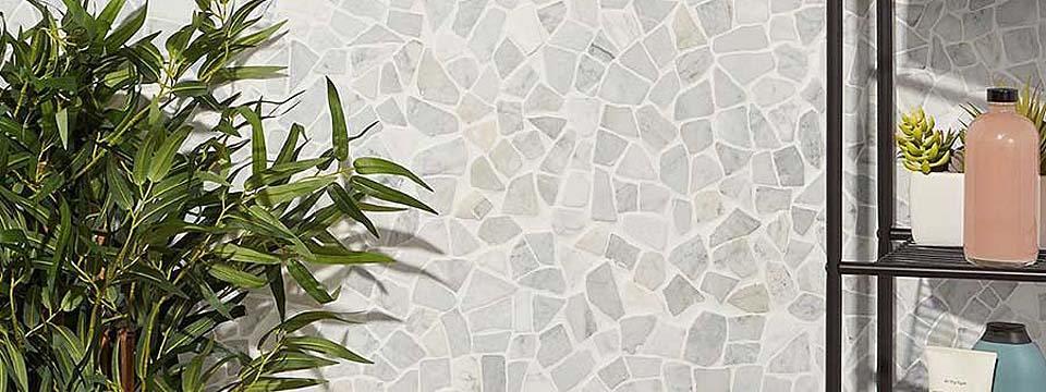 These durable stone mosaic tiles are ideal for feature walls, water features, swimming pools and outdoor hardscapes and pathways.